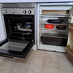 En el alojamiento hay una pequeña cocina, que está equipada con nevera, horno y placa.